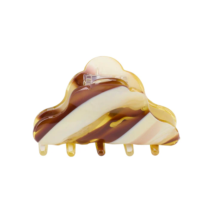 Skøn mini hårklemme. Brun og gul stribet i dæmpede nuancer.